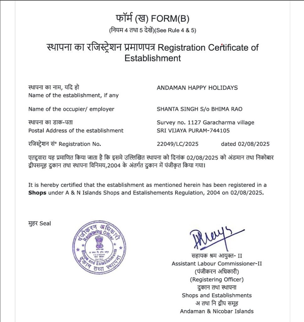 Based in Garacharma, Sri Vijaya Puram, Andaman Happy Holidays is a dedicated tour and travel agency committed to making your island dreams come true. With deep local roots and years of experience, we specialize in crafting seamless, memorable journeys across the Andaman archipelago for families, couples, groups, and adventure seekers alike